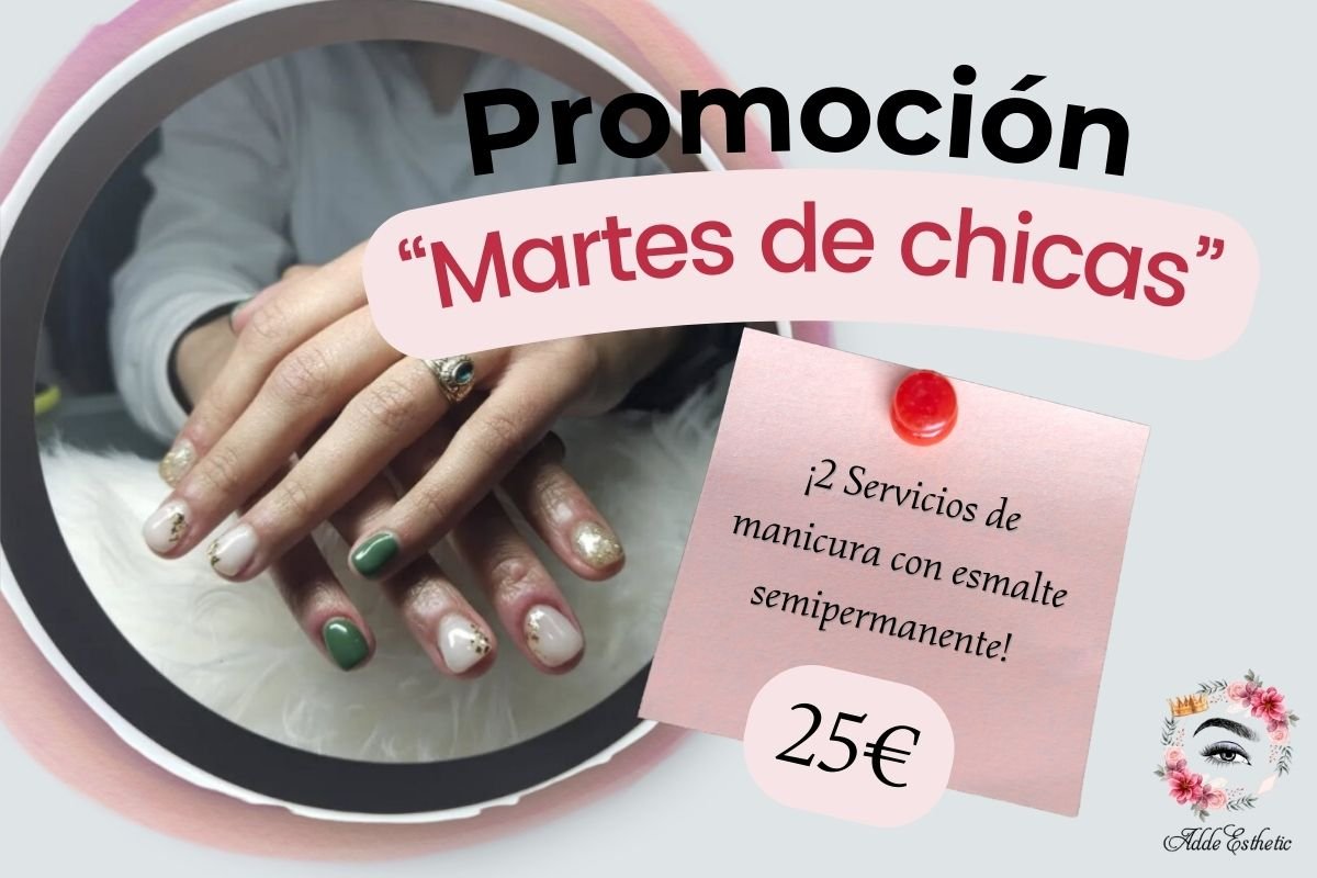 ¡Visítanos con una amiga y disfruta con ella de nuestra promoción de manicura semipermanente! Incluye diseños a mano alzada, stickers, etc..
